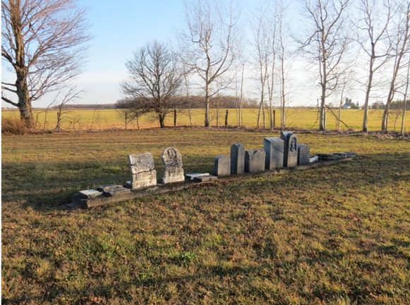 About a twenty-minute drive from the Wellington County Museum and Archives, there is a cemetery; a small square of yellowed grass bordered by a copse of dense trees was inlaid within another farm. A small blue plaque marks this resting place as the African British Methodist-Episcopal Cemetery. It consisted of a neat row of about a dozen Cemetery disintegrating headstones. Some stones were in pieces, and over the years restoration attempts were made. While the intention was well-meaning, in practice these attempts did more harm. Iron bars bolted to some stones held them together, but the bolts obscurred the names, overlayed with orange blooms of rust.