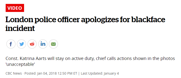 Finally, the opening image in this blog post is from a 1996 minstrel production by the Fergus Brass Band performed at the Fergus High School and demonstrates the continued presence of blackface in Wellington County. Over the 140 years of its existence, the Fergus Brand Band performed in racial costumes; black and white photographs of the band, in the Wellington County Museum and Archive, show members dressed in “Chinese costume” (1950), “First Nations costumes” (1955), and “Arab costumes” (1970).